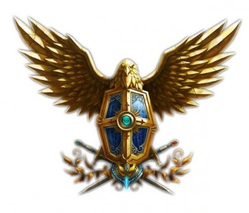 德玛西亚的标誌以俯瞰万物的猛鹰為主要构成,象徵著洞悉一切且公正严厉的国家体制;而在猛鹰羽翼下的剑盾徽记,则是象徵著护卫德玛西亚及其所信仰的道德规范的决心,整体标誌以金色為主,代表德玛西亚追求荣耀、财富与活力的特质。