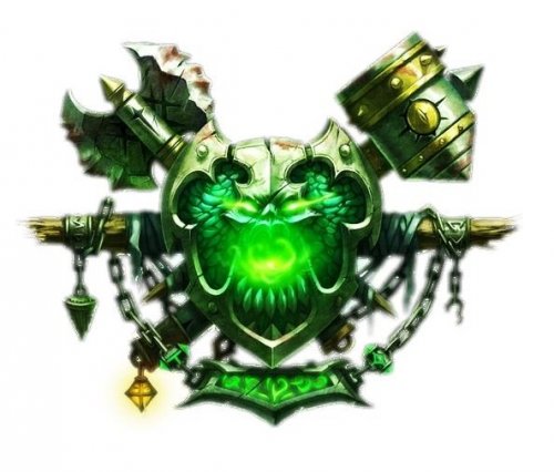 诺克萨斯的标誌以野蛮且不对称的武器為背景,展露出无视规范的强硬军事作风,以及為求胜利而不择手段的作法;同时中央以绿色带有恐惧图案的盾牌為主,绿色是代表著暴虐、邪灵与神秘的顏色,相当符合诺克萨斯的特色。