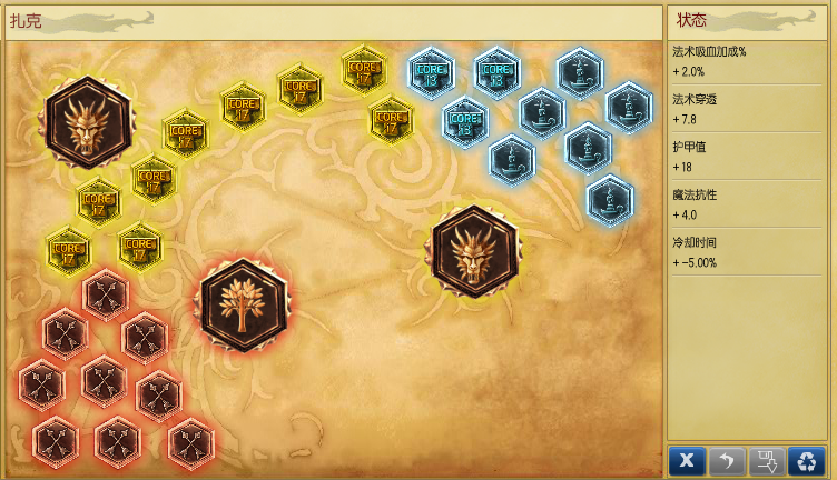 在攻击方面,双人剑可以造成大量团战输出。由于扎克不需要法术强度,所以点出攻击力增加清野效率,死亡游戏打野必点,法力编织平A配合技能释放造成更大技能伤害,点出双穿弥补不出攻击装的短板。