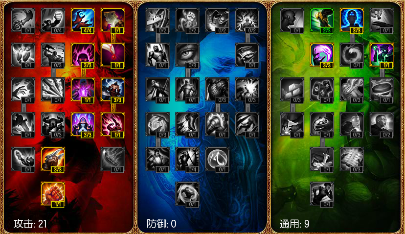 点出死神,方便利用一套爆发击杀英雄,和收割残血;点出死亡游戏保证自己击杀后有一定的血量和蓝量继续战斗或者逃 跑;点出屠夫、盛宴,方便补兵和回复;点出思想之力、奥术精通、高阶法师,增加自己的法术强度;点出毁灭攻势,增加自己的法术穿透;点出末日浩劫,增加自 己的伤害,点出飞毛腿,增加移动速度;点出冥想,提高蓝量回复;点出召唤师的洞察,缩短召唤师技能时间;点出炼金精通,提高红药蓝药的性价比。