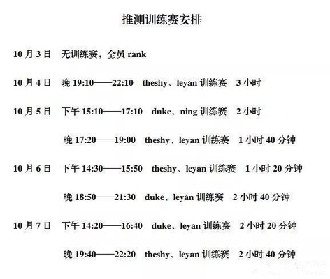 因为队员的欧服ID大家都知道,所以如果队员突然在某个时间点,大部分人都没有打Rank了,那么很大的概率就是去打训练赛了,如果只有一两个选手在Rank,那么很有可能这场训练赛这一两位选手就没参加,根据这个之前RNG粉丝也推测狼行最近没打训练赛,都是zrr在打,Zrr作为RNG在小组赛的首发可能性比较大。 IG这边也是一样,因为队员比较多,所以训练赛的时间更容易分辨。有细心的IG粉丝根据队员的欧服Rank推测出了训练赛状态,具体如下,从10月3日-7日这五天的时间里,除了3号没有训练赛之外,其他的日子都是有训练赛的,一共七场训练赛,ning只打了一场,是5日和duke一起的,之后就再也没打过训练赛了。