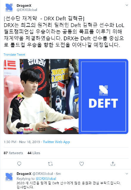 韩国DRX战队(原KZ战队)官宣了有关Deft选手续约至2020年的消息,之前该队的辅助TusiN选手,打野Cuzz选手以及中单Naehyun选手已经陆续离队,而在Deft续约消息宣布前1小时,上单选手Rascal也已经官宣了离队消息。也就是说DRX战队已经明确了会在S10赛季以Deft为主打造出LCK赛区新银河战舰。 此前,DRX战队已经引进了格里芬前任传奇教练cvMAX,且在韩国媒体上放出大话,表示在S10赛季将会“铁板钉钉”地进入S赛,并会十分轻松地击败SKT成为新皇,很显然Deft将会成为建队基石。不过从目前版本的更迭来看,“四保一”阵容显然已经被时代所抛弃了,DRX签下全LCK最贵的AD选手是否明智依然还是一个位置数。但唯一可以肯定的是,凭借cvMAX与格里芬选手们的感情,加上格里芬战队目前正在承受的全网负面舆论轰炸,极有可能中野选手会选择转会至DRX战队。 目前韩国网友对于Deft续约的消息表达了极大的支持,表示十分期待他在新赛季击败Faker的SKT,成为韩国电竞史上最强的“旧皇挑战者”。而他的全明星支持率也因为建队的消息飙升至15.1%,一举超过了原第二名Clid。 不过,EDG粉丝对于Deft续约的态度却呈现出两极分化的态度。有玩家表示:“EDG倒了,祝愿戴先生前程似锦,希望在世界赛上再一次见到你的身影。”这些玩家主要为EDG战队的老粉丝,见识过Deft、胖将军与七酱组成的巅峰三人组的EDG。 而也很大一部分EDG粉丝由于Deft回到LCK赛区后的不当嘲讽言论,表达了自己的不满:“LPL需要这种混子ad?”“你们不会真以为菜电会把他买回来吧?”“硬币哥说得对,如果你来lpl只是为了赚钱,那就请你不要来中国,中国不欢迎你!” 不知道各位小伙伴怎么看待Deft续约这事?DRX又会有哪些选手加盟呢?欢迎在下方留言。 |