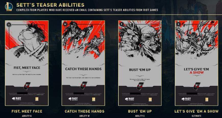 12月9日凌晨时分,外媒曝光了LOL新英雄赛特的最新动向。目前拳头公司已经在美测试服通过发邮件的方式,揭示了赛特到来的日期。这也是S10赛季自赛娜,厄斐琉斯之后会登场的第三名新英雄。根据神秘卡片“赛特的邀请函”来看,他会在2020年1月14日上午11点现身于游戏之中。 在拳头发给玩家的邮件中揭示了新英雄的设计思路与背景故事。他是一位来自艾欧尼亚的斗士,出身于卑贱之地在打斗中茁壮成长。他在被敌方强烈击打后,不会将被挑衅的所有愤怒都释放在对方的脸上,在激战中把对手的头打得粉碎。 紧接着拳头在邮件中也曝光了他四个技能击中敌方后的漫画张力,我们可以明显看出QER技能应该都是用来输出的,而W2技能则有可能是背景故事中所提到的反击手段。这位新英雄应该是一位控制与伤害兼顾的上单战士。 当然不论是从背景故事来看,还是技能预览来分析,拳头这位新英雄的画风与《守望先锋》的铁拳实在是太像了,被玩家吐槽成“借鉴同行的作品”。 当然玩家们非议的并不是人物元素的冲突,而是并不是希望看到召唤师峡谷中出现跟铁拳一样无脑上分的英雄,这会毁掉正常玩家的游戏体验。不过根据LOL一贯的平衡性来看,发生毁天灭地上勾拳的几率应该不会太高。 当然赛特的到来也必将改变上单的生态链,也许在Doinb的英雄池多了一个备选项。小伙伴们对于这个新英雄怎么看呢?欢迎在下方留言。 |