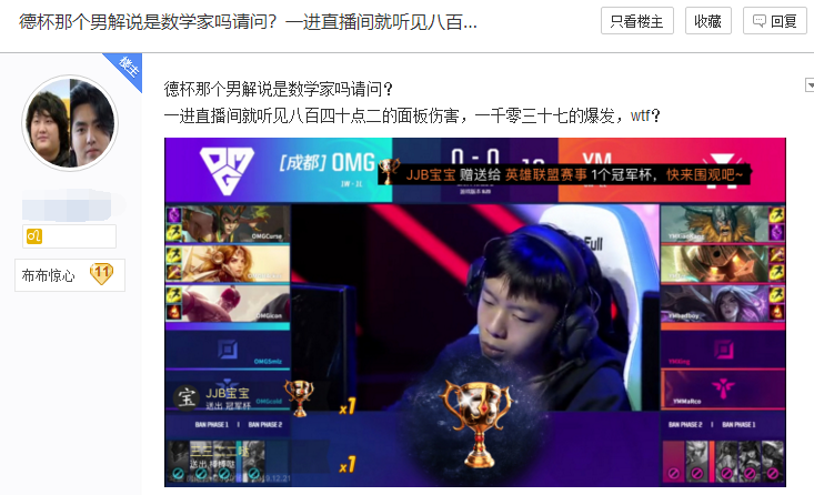 在周日德杯比赛的后半段,曾出现过一名“语不惊人死不休”的男解说,直接在比赛的过程中,计算出了卡莎在铁男大招领域内,至少需要4.7输出1503点伤害才能在后续团战处理中掉铁男。更是在后续解说时根据英雄的现有装备算出了在对线期842点面板伤害,团战爆发1037点伤害这样精确到个位数的数据。 这位解说也被网友们调侃为“电竞华罗庚”,认为他是在直播作秀摆人设。可令人意外的是,在比赛结束后,他直接冲着粉丝秀出了直播计算时的护甲与魔抗的反比例函数公式模型,自曝了自己“数学家解说”的真实身份。 根据这位解说透露来看,其实他当初报出的数字也并不是通过心算完成的,而是因为搭档连说了两三分钟,自己接不上话没事情做就只能算一下了。 在数据方面,他是想要依靠数字的手段去分析卡莎一方开团的成功性。由于当时敌方铁男已经无解肥了,所以就算站着不动给卡莎A的话,在死亡领域中卡莎也只能输出1500的伤害,处理不掉这个铁男。想着用数据去佐证选手们的团战策略。 网友们对于这位解说的专业水平与数学能力也表示了肯定,“这个就叫专业。理论上来说花时间研究下伤害系统,确实可以通过看看铁男的护甲魔抗算出来需要打多少伤害。”对比起之前一句“牛x”闯天下,峡谷相对论创始人的一笔姐,与同为德杯解说的“铁男开大,以多打少”的反身姐而言。显然,观众们更喜欢看到像“电竞数学家”一般的专业解说出现。 各位小伙伴,你们有见过在别的比赛中分析选手英雄爆发数据,这样的大场面吗?欢迎在下方留言。 |