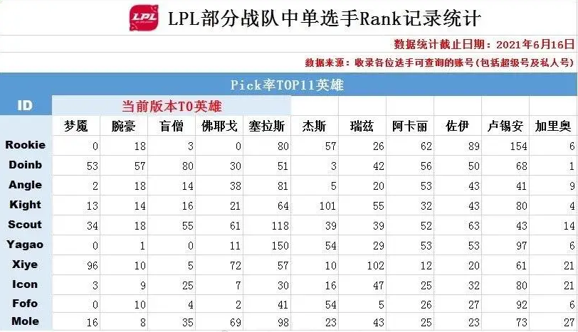 LPL夏季赛的开局对于IG战队来说显然称不上好,作为曾经获得英雄联盟S赛冠军的队伍,现在的IG早已不复往日的荣光了。打了三场比赛却取得两连败的赛果,粉丝们比任何时候都上头。在The shy回来之前,很多人已经做好一胜难求的准备了。 当前IG战队的轮换也成了大问题,从去年开始IG就一直在寻找最适合队伍的下路组合。泡芙+南风、泡芙+宝蓝、泡芙+Lucas、wink+宝蓝、wink+Lucas、Snow+Lucas...纵观全球各大赛区,你都找不到轮换如此混乱的队伍。 在连续败给EDG和OMG之后,粉丝们换人的呼声又高了起来,“没有上场的就是最强的”早就成了IG超话的真理。而管理层似乎也听取了这方面的意见,训练赛已经开始使用Snow+Lucas的组合了。鉴于Wink之前的表现,下一场Bo3中Snow登场的可能性并不低。 但IG的问题并不单单只出现在下路,强调了两个赛季的BP问题现在依然没有得到解决。随着年龄的增加,Rookie的操作再也回不到巅峰时期的。而真正可怕的地方就在于,Rookie现在甚至都不会使用版本英雄来进行比赛对局。 IG超话的粉丝近期统计了半年以来全联盟中单选手的Rank情况,并将夏季赛已经打过比赛的中单选手的Rank数据单独绘制成表格。由于是IG粉丝制作的,因此Rookie被排在第一位。只是从数据上看,他显然已经脱离版本了。 比赛版本当前的T0英雄主要是梦魇、腕豪、盲僧、佛耶戈和塞拉斯这几位,但Rookie使用场次最多的只有80场的塞拉斯。腕豪有过18场的记录,实际效果却不尽如人意。倒是一向赢线不赢团的卢锡安,Rookie在Rank中胜率很高。 同样擅长传统法师的Knight,在经历了揭幕战中失败后也开始高强度的练起了佛耶戈。梦魇、腕豪、盲僧这类战士英雄也都雨露均沾,只希望能在BP上最大限度的帮助队伍获得优势。当有了其他中单选手作为对比对象,Rookie就有点被架在火上烤的意思了。 Doinb在近期的直播中就曾因为所说的话起了一波节奏,因为他表明了“状态和年龄无关”的观点。Doinb觉得年纪大的选手只不过练英雄更慢而已,并拿khan举例:“Khan在MSI和我说到过,当时练盲僧的时候,不管是训练赛还是Rank都在玩,打了差不多40多场才练了出来。” 而他自己对版本T0英雄的Rank量,也排到了众多LPL中单的前列,甚至于大家公认的Doinb玩得最绿色的英雄佐伊,也有着50场的Rank记录。 LPL夏季赛这才刚开始,但IG想要渐入佳境需要解决的问题还有很多。粉丝们似乎只能寄希望于The shy的回归和Nofe的执教,能给IG带来新风气了。 |