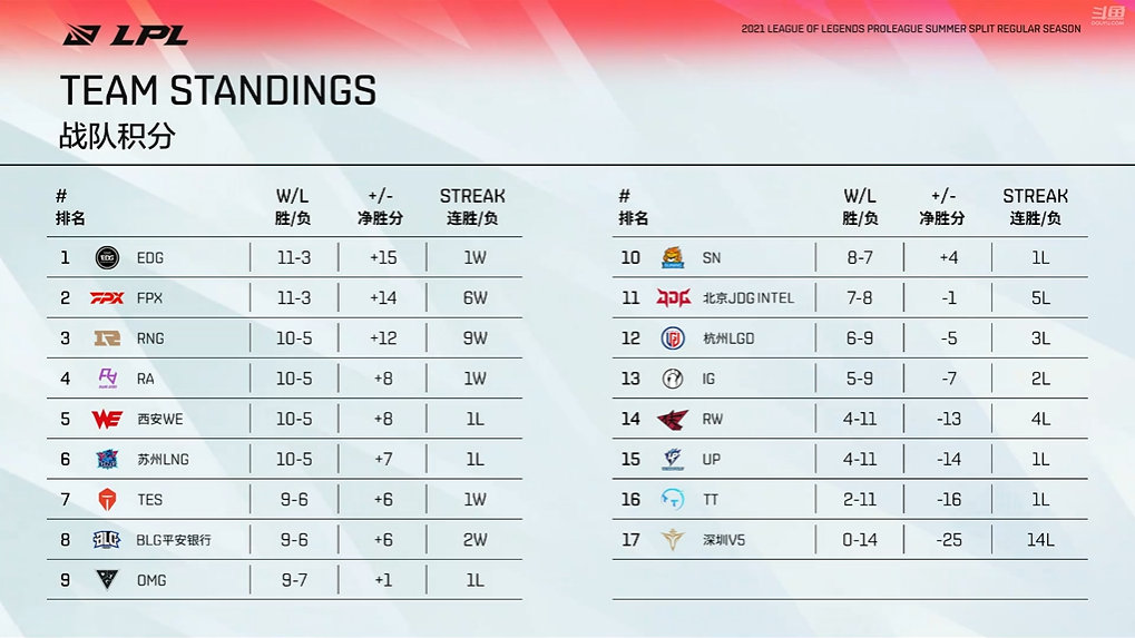 在昨晚的比赛结束后,LPL夏季季后赛的10支季后赛队伍便已角逐出来了。接下来的比赛EDG、FPX、RNG、RA、WE、LNG、TES、BLG、OMG、SN这些队伍只会在排名上出现改变,而不会有人出局。 赛季初以1-5开局让粉丝怀疑能否进入季后赛的RNG,如今已经用一波九连胜坐三望二,只是原本同样处于连胜状态,并希望通过击败RNG来解锁“击败强队”成就的WE,却成为了背景板。 拿下BO3的首场时60E的粉丝都觉得优势很大,就连WE的名宿微笑也持有相同的看法。然而后面两局Cryin就分别用卡牌和马尔扎哈诠释了究极工具人的玩法,也能帮助RNG赢得比赛的胜利。毕竟S7的皇冠哥,就是依靠这么一手击败了Faker终结了SKT的王朝。 在这场比赛结束后,国外统计网站UPCOMER更新了最新全球战队战力排行。RNG如今已经凭借优秀的表现和发挥来到了第二,这在夏季赛之初根本无法想象。反倒是去年的S赛冠军队伍DK,由于近期的表现挣扎在榜单上失去了踪迹。 曾作为WE的首发ADC以及教练的微笑,对这支队伍倾注了心血,看比赛时他也更能从选手的角度找问题。他认为后两局WE被RNG打出碾压之势的关键,当然是后者的纪律性和配合更好,但WE的思路以及敢打敢拼的精神有所欠缺,才是这支队伍难以跻身一线强队的重要原因。 当第二场对局大势已定时,微笑就评价悲伤:“WE的打野都喜欢保KDA,山泥若也是这样。”尽管为了节目效果,微笑谈到了前段时间已经坐上了被告席的猪猪,但这更多还是在表达对悲伤打法的不认可。 WE的粉丝对这场失利表现地痛心疾首,觉得自己的主队似乎并不在乎复活甲(上半区优势)。更有甚者又回忆起了去年春、夏季后赛中,被一轮游所支配的恐惧。试想每一次休赛期的调整和引援配合选手们的努力,最终却只能做到原地踏步,那么补强的意义在哪呢? 所幸当前WE和排在第四的RA同分,在接下来后有打进前四领取复活甲的机会。只不过受限于春季季后赛的积分太少,WE要想获得出战S赛的机会,只有竭力打入决赛这一条路可走了。 大家觉得WE还能重返上半区吗? |
