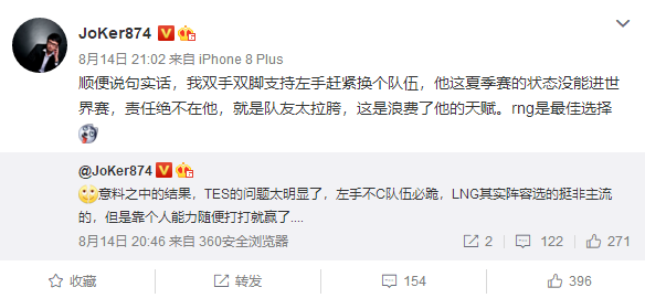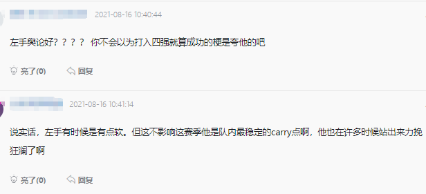 在上周六的LPL季后赛,TES由于选手状态集体低迷的关系,意外爆冷输给了LNG战队,彻底失去了争夺世界赛门票的机会,也引起了不少网友与粉丝的争议。其中,矛盾的焦点还是集中在“不能C”的AD阿水,及“一直C”的中单左手身上。 在这场比赛过程中,前LPL解说Joker就炮轰了阿水的低迷表现,称他今年退步得很厉害,并“双手双脚”支持左手赶紧换队伍,就从左手夏季赛的状态来看,没能进世界赛,责任绝不在他,队友拉胯到浪费了他的天赋,可以考虑去一下RNG。 万万没想到,左手本人似乎也存在了换队的想法,他在8月15日深夜的韩服排位赛中,将自己的韩服ID改为“2021seeyou”,即再见2021的意思,给予了网友无限的联想。有网友表示,左手这个ID一改,几乎是坐实了要跟TES说拜拜的意向;但也有网友认为,seeyou在英语语法内还有回头见的意思,可能左手不一定会做出离队的选择。 当然,大部分玩家都认为,或者说支持左手与2021及TES告别,一是因为左手的合同将会到期,可以用自由人的身份去寻找更好的队伍,二是如今TES队内的氛围与BP在战马到来之后,就变得很奇怪,尤其是晴天过于贫瘠的英雄勺,让左手在直播过程中,当面阴阳怪气过晴天不会用刀妹 最重要的一点,自然还是集中在阿水身上了,由于阿水粉丝数量过多的关系,TES队内其他选手身上的优点都会被下意识地掩盖,而不足之处则会被无限放大,这其实也会让选手产生心理方面的不平衡。特别是对于左手这位选手来说,他的发挥其实一直都很稳定,但因为有阿水在队的关系,光芒常常会被掩盖掉,给予观众“怀才不遇”的感受。 不知道大家又是如何看待左手改韩服ID这件事,又是否会支持左手离队转会呢?欢迎在评论区参与讨论哦。 |