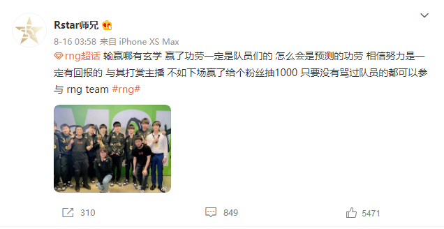 时隔多日之后,LPL夏季赛季后赛的第三轮对决将于今晚正式开打。从下半区连斩SN和TES的LNG,即将面对春季赛和MSI的冠军冠军队伍RNG。由于双方所表现出来的势头都极为强劲,因此最终谁挺进下一轮都不会让人感到意外。 大战开始之前对比分进行预测,是件非常常见的事情。英雄联盟赛事官方,也欢迎所有玩家参与进来。当然,官方解说们的预测结果也会提供给大家做参考,只不过管泽元却凭借自己的“反向毒奶”,在上周的比赛中解锁了四杀成就。 管泽元的毒奶恐怖在预测并非无的放矢,而是有理有据。最初的预测结果也是大部分观众的心中所想,然而实际情况却恰恰相反。在连续做出反向比分预测之后,管泽元就被LPL的网友们戏称为洞悉了一切的“管神”。 这原本只是玩梗,但微笑在上周的比赛中连麦管泽元、LNG经理左雾刷礼物给“神”上供之后,情况就不一样了。许多人真的开始相信比赛会被玄学所影响,在管泽元刷礼物乞求“神”的祝福成了常态,这让他本人也有点难以招架了。 于是乎,在季后赛后半段的大战开始前,管泽元在直播中正式宣布了不再预测的重要决定,并明确表示:“我无法改变大家的运气,承蒙各位厚爱已经退出预测界。希望大家专注比赛本身。” 关于管泽元为什么决定不再预测,当然不是嫌弃礼物收得太多、热度太高。真正让他害怕的东西,其实是预测之后的“反噬”。季后赛推进到现在只剩六支队伍,除了LNG和RA粉丝量稍逊一筹,“御三家”和FPX都代表着LPL最大的粉丝团体。 倘若自家主队出局了,需要找地方宣泄的粉丝们,很容易就会针对起“事先就看穿了一切的管神”,这种情况可能会出现在未来任意一场比赛结束之后。事实上现在已经开始有人对管泽元的预测产生不满了,RNG工会的人就表明了自己的观点: 赢比赛都是选手的功劳,与其打赏主播不如抽红包给粉丝! 在宣布退出预测界之后,管泽元算是彻底舍弃毒奶人设了。不过以他作为官方解说的业务能力,也无须通过这种方式来获得热度。不靠毒奶人设来营销自己,并在最好发挥的时候急流勇退,本身就值得大家肯定。 正如管泽元所说的那样,往后的比赛大家更应该将关注点放在选手的发挥和战队表现上,这才是电子竞技的魅力所在。 |