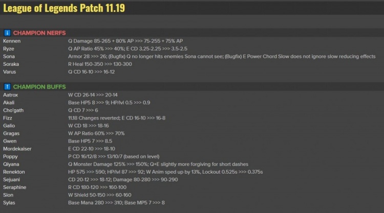 还有二十天,英雄联盟S11全球总决赛就将正式揭幕,许多战队当前去往了冰岛,为接下来的世界赛做着准备。拳头设计师当然也没有闲着,努力在对世界赛版本的英雄强度进行着平衡。今天凌晨,拳头游戏设计师主管就在社交媒体上公布了11.19世界版本的相关改动。 在本次的改动中,许多原本被削弱的英雄技能数值和机制都遭到了回调。新削弱的英雄,也基本没有伤筋动骨。拳头设计师给出的解释是“害怕影响世界赛进程,改动比较保守”,但玩家们懂得都懂,实际游戏对局中发生的情况,通常都在设计师的预料之外。 英雄数值削弱 凯南:Q技能伤害从85-265+80%AP 变为 75-255+75%AP 瑞兹:Q技能AP加成从45%变为40%;E技能冷却时间从3.25秒-2.25秒变为3.5秒变为2.5秒; 琴女:护甲从28变为26;修复Q技能不再会命中处于战争迷雾中的敌人的Bug;修复E技能的减速效果不再无视减速效果抗性的Bug; 索拉卡:R技能提供的治疗量从150-350变为130-300; 维鲁斯:Q技能冷却时间从16秒-10秒变为16秒-12秒 凯南、瑞兹这两个在夏季赛出场率很高的英雄,都受到的不同程度的削弱,但这两个英雄的强度和机制,注定他们不会缺席世界赛的BP。每年这两个英雄都能在世界赛舞台上贡献名场面,相信这次的降温并不会影响到他们在比赛中的战术地位。 英雄加强 剑魔:W技能冷却时间从26秒-14秒变为20秒-14秒 阿卡丽:每五秒内的基础生命回复从8变为9;成长生命回复从0.5变为0.9; 科加斯:Q技能冷却时间从7秒变为6秒; 菲兹:11.18版本的改动全部回调;E技能冷却时间从16秒-10秒变为16秒-8秒; 加里奥:W技能冷却时间从全等级18秒变为18秒-16秒; 酒桶:W技能的AP加成从60%变为70%; 格温:每五秒内的基础生命回复从7变为8.5; 莫德凯撒:E技能冷却时间从22秒-10秒变为18秒-10秒; 波比:被动的冷却时间从16秒/12秒/8秒变为13秒/10秒/7秒(基于等级而变化) 奇亚娜:Q技能对于野怪的伤害从125%变为150%;Q技能+E技能的短距离冲刺判断会更加宽容; 鳄鱼:基础生命值从575变为590;成长生命值从87变为92;W技能的动画速度提升13%,自我定身的时间从0.525秒变为0.375秒; 瑟庄妮:Q技能的冷却时间从20-12秒变为18秒-12秒,技能伤害从80-280变为90-290; 萨勒芬妮:R技能冷却时间从180秒-120秒变为160秒-100秒; 塞恩:W技能提供的护盾量从50-150变为60-160; 塞拉斯:基础蓝量从280变为310;五秒内的基础蓝耗回复从7变为7-8 本次版本改动被加强的英雄很多,不过最值得关注的对象还是鳄鱼和奇亚娜。鳄鱼一直以来都是职业赛场和路人局中上单位置的常青树,独特的技能机制保证了他无论是打线、配合打野,还是打团当前排、切C都能拥有不错的效果。 奈何赛场上的高出场率似乎让拳头设计师感受到了不满,在上个版本中鳄鱼最关键的技能W眩晕时长从1.5秒改为了1秒。大家都知道鳄鱼的红怒W是有挥三下的动画动作的,在对方韧性够高的情况下,如今的鳄鱼开W控人就等于控自己。 说“鳄鱼被砍废”绝不是危言耸听,数据是不会骗人的。在遭到削弱之后鳄鱼的出场率和胜率都遭遇了直线下滑,以至于在OPGG所有上单英雄的综合排名中位列第40名!从这个角度来看,鳄鱼已经沦为了名副其实的下水道英雄。 11.19版本的加强设计师在增加了鳄鱼生命值的同时,也意识到了W技能的影响。随即提升了动画速度以及缩短了自我定身时间,不过这样做是否能把鳄鱼打捞上岸,就得看实际对局中能给玩家带来多大的手感提升了。 另一边的奇亚娜在S9赛季之后就基本没有在职业赛场上出现过了,这次为了能够让她获得更多的出场机会,设计师加强了她的打野效率以及连招的流畅度。这些调整无不是在为打野奇亚娜的回归做着准备。 如果要在职业选手中选出一个奇亚娜玩得最好的人,FPX的打野小天光是在S9世界赛上贡献的名场面,就能凑成一段集锦了。倘若此次更新后奇亚娜的强度足够,相信各个职业战队的教练组,也会考虑要不要把她加入BP选项中。 那么大家觉得这次的版本改动,对那些选手和战队提升最为明显呢? |