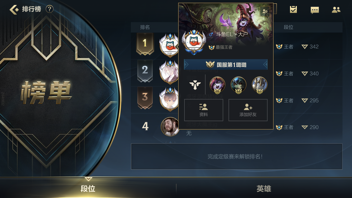 英雄联盟手游国服现已上线一周,经历了短暂的适应期之后,英雄联盟手游的玩家也跟其他MOBA游戏的玩家一样,开始了排位赛的上分之路。由于从端游转为手游后的优化及操作系统不同,连带着英雄强队也会产生变化。 但就在普通玩家还在研究不同英雄的新玩法和出装思路,希望可以顺利打完定级赛时。真正的大佬已经攀上了国服最顶峰!截止到发稿前,英雄联盟手游国服一共有6个王者段位玩家。其中QQ区一个、微信区五个。 而微信区分最高、同时也是第一个打到王者段位的玩家,ID名为斗鱼EL、大户。只不过跟大家记忆中英雄联盟端游韩服最高分,常年由野爹霸榜不同,英雄联盟手游国服上分最快的玩家主打的却是辅助位置。 一直以来在路人玩家的观念中,辅助位都是“混子”,但很多时候辅助所需要担负的任务(插眼、报点、开团、保人)却是最多的。当然,平等看待每个位置的作用固然重要,选择合适的英雄也必不可少。 这位国服分最高的大佬,主玩的英雄分别是璐璐、娜美以及加里奥。最后阶段的冲分任务,更是全都交给了璐璐和娜美两个软辅。香炉始终是核心装备,附魔装则看实际对局情况,来决定选用救赎、鸟盾还是双生暗影。 正是靠着这两手绝活,国服首个王者段位成就被他成功解锁,而大佬本人也因此顺利加冕了国服第1璐璐的桂冠。虽说英雄联盟手游和英雄联盟端游是两款游戏,辅助璐璐和中单璐璐玩起来也大不相同,但只要提到这个英雄,想必大家脑海中第一个浮现的职业选手就是Doinb。 插句题外话——倘若今晚的S11英雄联盟全球总决赛小组赛中FPX确定出线形势,Doinb搞不好真能试试打个皮肤局。 不得不提的一点是,英雄联盟手游和英雄联盟端游在对局习惯和节奏上,都有着非常大的差距。光从辅助英雄联盟的强度和热度方面,二者就截然不同。端游玩家偏爱拥有硬控的辅助,手游玩家则更喜欢软辅的Buff加成。 当前下路对局的优劣对整场游戏胜负的影响是最强的,这也是职业赛场上所说的“版本”。趁着下路权重大的契机,寻找AD大腿双排无疑条上分捷径。 那么在英雄联盟手游上线一周后,大家又打到什么段位了呢? |