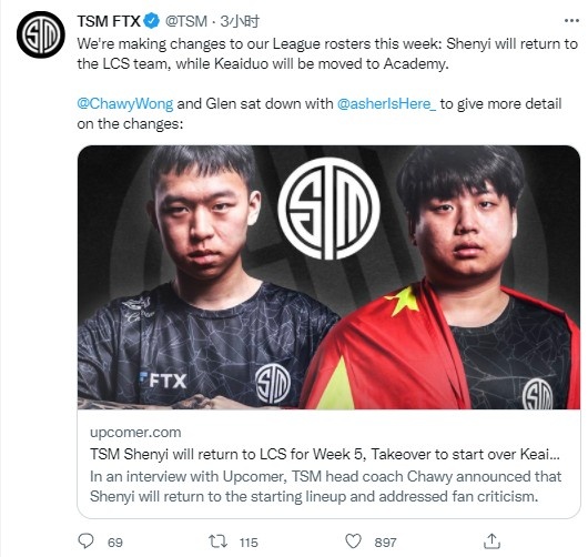 经历了春节过后的紧密赛程,LPL赛区昨日休息了一天没有安排任何比赛,这让观众们有了更多时间,关注海外战队的表现。LCK那边T1喜提十三连胜依然保持着不败金身;LCS赛区成绩最差的队伍则在用自己的方式吸引观众们的注意。 开始排列组合?TSM下放Keaiduo上调shenyi 今天凌晨TSM官推发布了一则消息,我的第一反应是TSM管理层在搞事。TSM发布的人员变动公告显示:此前下放到二队的中国籍辅助选手Shenyi重新回到一队并将在本周比赛登场。而另一位中国籍中单选手Keaiduo将下放到二队。 春季赛前夕,LCS豪门战队TSM在争取不到比尔森的情况下,打算掏出500万美元的预算打造新阵容,这与他们在去年光是给蛇蛇就开出的300万美元年薪相去甚远。于是管理层做出了一次创新型尝试,直接从LDL挖人买中国选手,试图花最少的钱来抽卡。 可常规赛开赛以来,TSM却一路连败到了垫底的位置,如今赛程过半仅仅拿下一场胜利。此前下放shenyi战队给出的理由是“沟通不好,”这次Keaiduo被下放理由则是“希望他在压力更小的环境下训练。”可从赛场上的实际表现来看,明显有人更需要冷静一下。 很难说管理层是觉得中国选手有问题,还是需要中国选手有问题。至少从目前的情形来看,我不认为春季赛的TSM还有什么值得期待的地方,提前备战夏季赛或许是最好的选择。 当然,相比于在LCS的选手名单变动,咱们赛区内部其实还有更离谱的。 BLG首发还是Doggo,Uzi发朋友圈让粉丝躺平 今晚BLG战队将对阵FPX,没有了德杯时那般好状态的FPX常规赛以来的成绩并不理想。而在官方发布的首发名单中,大家依然没有看到Uzi的声影。反倒是FPX这边换下了Gori,启用了新人中单Care。 我相信不少粉丝对于这样的结果早已经见怪不怪了,虽然每逢BLG开赛的前一天都会期待一下,但整个赛季Uzi却从未出现在提前发布的首发名单上。最近几天LPL的观众们对BLG的不满情绪愈发高涨,黑子和白子第一次统一了战线。 ——毕竟Uzi不打比赛,黑粉都找不到黑的角度。 微博Uzi的粉头透露了Uzi本人的态度,他希望大家最近不要去讨论比赛的事情,也不要在网上跟其他人对线,可这谈何容易? 明晚饭堂节目将迎来重开,有关Uzi和BLG不用想都已经提前占好了坑位。只是不清楚现在的饭堂,开团能力是否有所退化,还能不能拿出“舍我其谁”的气魄整活了。 讨论完职业战队内部的相关事宜,最后再让咱们聊聊场外趣事。 大魔王Faker解锁了2500杀成就,安掌门在线邀功 昨日的比赛对T1战队而言意义重大,不只是连胜的延续,Faker的生涯击杀数也突破了2500次大关。 对这个还在打比赛的传奇,其他选手无不敬佩他的职业态度以及竞技状态。前三星战队打野安掌门就在Faker达成记录后发来贺电,并表示:“第一个杀的就是我,我感到很光荣。” S3赛季Faker出道的第一场比赛对阵的就是安掌门,然后就用豹女击杀了安掌门的螳螂。Faker的生涯第一杀始于三星选手,生涯第2500杀对方还是三星(GEN)选手。某些事情因为太过巧合,总让人觉得冥冥之中是不是真的有天意。 而2500杀也并未让Faker满足,他的下一个目标是3000杀! |