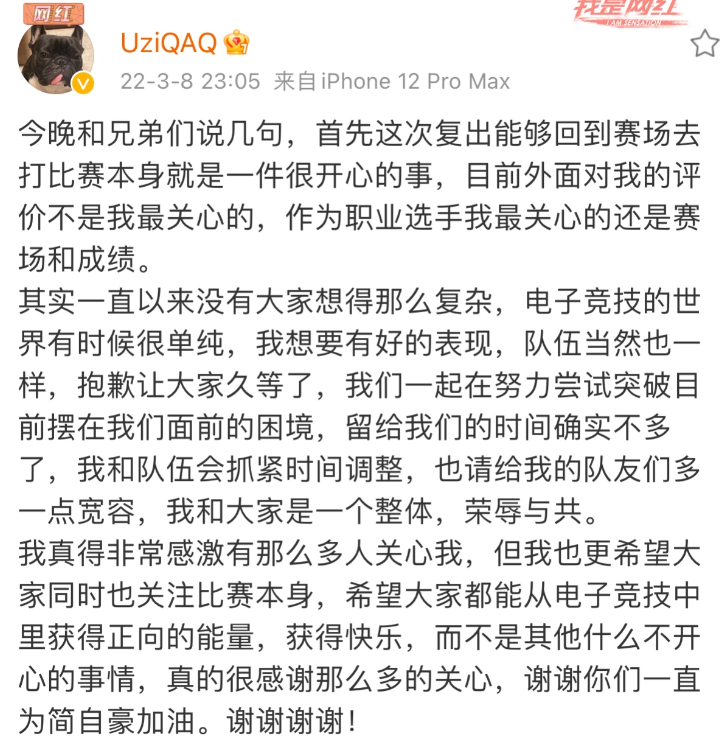 V5对阵BLG的BO3,Rookie迎来了自己的职业生涯里程碑之夜。在首场比赛0人头的情况下,第二局Rookie的招牌发条以8-0超神战绩赢下比赛的同时,也让自己的职业生涯总击杀数超越了Uzi位列榜首。 而在第二场对局结束后,演播厅内的LPL解说记得也向观众们公布了BLG射手位换人的消息。在粉丝和观众们的期待下,Uzi在自己的LPL击杀纪录被打破以后,再次回归了赛场。 Uzi完美发挥难掩败局,呼吸哥惨遭集火 熟悉的EZ、熟悉的对线压制,Uzi上场后BLG的下路止住了前两场的颓势,在打野的帮助下开始爆线。可在二十几分钟就拿到电龙魂的情况下,BLG之后的几波团却都没有接赢,并最终由V5赢下了比赛。Rookie和Rich的发挥是取胜之匙,但这也暴露了BLG团队配合的问题。 这场BO3结束后呼吸哥成为了千夫所指,Counter位却没能打出效果,让很多上头的粉丝在微博对其进行了爆破。 而前WE上单草莓,则质疑起了教练组临阵换将的决策,于是便整活@WE官博:“下次WE比赛第一场输了能让我上不?” ——因为看了比赛的人都知道,Uzi的竞技状态完全配得上首发。 这场BO3打出了多个微博热搜,Uzi又一次证明了谁是LPL第一流量。不过将比赛的失利,全都归咎于某一个人的表现也大可不必。BLG需要的是更多的磨合,以扩充战术体系。毕竟季后赛将近,到了打BO5决胜局时再临场换人无异于自爆。 赛后Uzi发布了微博,感谢粉丝们支持的同时还为队友解围,希望大家:“能多给我的队友们一点宽容,我们是一个整体荣辱与共。”英雄联盟作为一款团队游戏,没有什么比队友协作、团队配合更加重要。 最终还是期待下一场对阵EDG的BO3,能真正看到Uzi出现在首发名单上吧。 我即版本,V5取胜后TES中野狂练阿狸、蔚 阿狸是12.4版本新崛起的中单英雄,但区别于LCK赛区这个英雄的大放异彩,LPL的中单却始终没能打出好的效果。在昨晚的比赛开始前,出场后的数据为5胜14负。 可在Rookie手下,这个英雄充分发挥了自己的优势。高机动性、中单英雄中少有的先手能力都被淋漓尽致地展现了出来。第三场他的绕后是V5发起吹响的冲锋号,而Karsa打野蔚的稳定控制,也在关键的中路团站中锁头了Uzi机动性超强的EZ。 这对中野组合给其他选手们提供了新思路,TES战队为了北伐大业能够成功,打野小天和中单Knight连夜在Rank中加练了这两个英雄。 只不过从最终的结果来看,效果并不好。或许这正应了那句话:很多时候评估一个英雄的强度,确实是要看ID的。 有人跟随版本,有人领先版本 在英雄联盟所有区服中,韩服无疑是含金量最高的。职业选手们在这里训练、学习,对版本理解极为透彻的玩家,也总能贡献出新的打法以及特别的出装思路。在当前这个其他中单都在练习阿狸的版本,Faker把目光转向了LPL观众非常熟悉的下路英雄卡莎。 最近的十多场Rank,Faker都在连续使用卡莎打中单,而从结果来看效果还不错。 卡莎本身的AP加成就不俗,出现在中单位置时核心装备为卢登、魔切、影焰三件套,这样能尽快进化Q技能加快清线能力以及伤害值。中后期W可以作为Poke手段威胁脆皮,抓住机会甚至还能飞进去瞬秒后排。 对线期也不会特别难打,Faker的卡莎就曾试过两级单杀妖姬。如果在后续T1的比赛中Faker正式使用中单卡莎,其他队伍将不得不重视这个英雄对BP的影响。 就像上赛季走上单人线的盲僧和男枪,只要好用他们就会突破原有的思维框架,并随着出场率的增加逐渐变成常态。后续T1的比赛,大家完全大可期待一手。 |