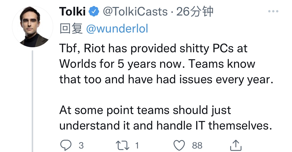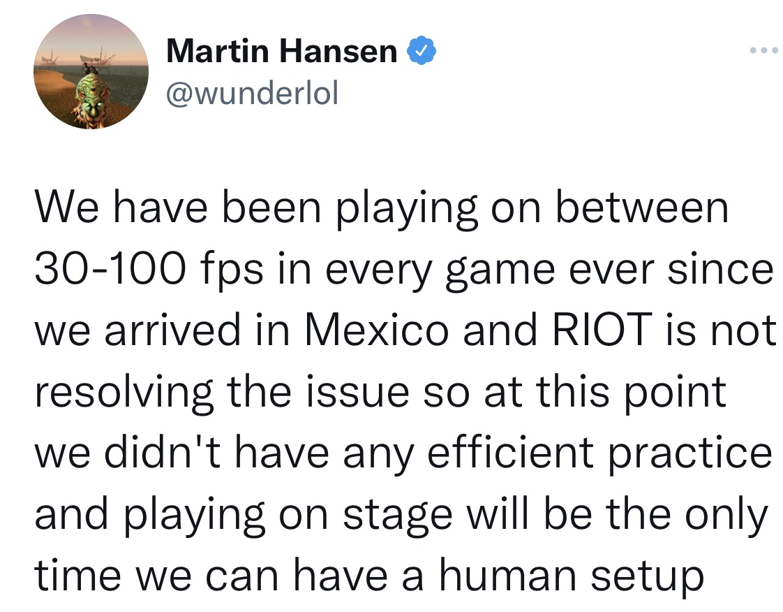 倒计时2天,受到万众瞩目的英雄联盟S12全球总决赛,就将迎来入围赛阶段的对抗。尽管这次旅途的绝大部分时间,参赛选手们都将待在美国本土,但对于那些需要从入围赛开始打的队伍来说,墨西哥城才是首站。 关于当地的风土人情,来自各个赛区的选手们大抵是无暇顾及的。在适应时差以后,尽快投入到游戏中才是正理。然而FNC的上单选手Wunder,在今天发布的推特动态中,却指出了一个正在困扰所有人的问题——“我们到达墨西哥之后,玩的每一局游戏都在30-100fps,拳头根本不解决这个问题,现在我们完全没法有效地训练。正式比赛是我们唯一可以在正常的环境下玩游戏的机会。” 是的,Wunder吐槽的点正是有关电脑的硬件配置。对此,作为战队分析师的Tolk还做出了补充,他坦言:“拳头这五年都在世界赛上提供糟糕的电脑。” 上一次出现类似的设备问题,还是在MSI季中赛上。当时RNG由于无法去到现场,拳头为保证公平性,要求所有人都要在35延迟这个区间进行比赛。但是因为官方的失误,在小组赛时RNG多打了一轮BO1。虽然结果是好的,可这件事带来的争议却持续到了MSI季中赛的结束。 再回到Wunder反馈的这个问题上来。 与MSI季中赛时官方通过软件限制延迟不同,这次游戏帧数过低所凸显出来的东西其实更加严重。毕竟影响游戏帧数的主要因素,就是电脑硬件设备。可英雄联盟作为一款已经运营12年的游戏,之所以能够吸引到如此多的玩家,一大优势就是优化做得好、硬件门槛低。 又或者用更通俗点的话来说,英雄联盟属于那种运行起来“显卡风扇都懒得转”的游戏。可就是这样一款不怎么追求配置的游戏,拳头提供的电脑却依然无法保证帧数的稳定。这才引得玩家们,发出了“还不如矿渣顶用”的调侃。 能够让“艾泽拉斯上单”Wunder发出控诉,这次的事情要说影响不大那一定是假的。但鉴于S12入围赛马上就要开打,拳头也只能优先保证正式比赛中,不会出现这种情况。 按照现在的状况来 看,或许只有能打进小组赛的队伍才能获得好的电脑进行Rank了~ |