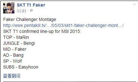 Riot拳头公司在今天(5月5日10点半左右)发布了2015赛季英雄联盟MSI季中邀请赛的中文解说团队名单。拳头官方微博表示,此次解说包括:娃娃、joker、若风、米勒、笑笑以及长毛,还有柚子。 ![]() 而就在拳头公司发表前娃娃就已经晒出了解说团的飞机合照。 ![]() 此外,若风已经到LA了,应该之后会和他们会合。 ![]() 而很多网友看到这次的中文解说团队中有Joker之后都感觉EDG这次稳了,毕竟Joker的谐星本质突显,打脸语录可不是乱吹出来的哦。 ![]() 这次的解说团如此庞大,可见拳头公司对于天朝的赛区更为看重,怎么说这次EDG都是热门队伍!让我们对于这次的季中赛拭目以待吧。 在韩国LCK春季季后赛决赛上,SKT战队在Faker未上场的情况下零封GE拿下冠军并获得MSI季中邀请赛的门票,加上季中赛有参赛队员数量限制,许多粉丝担心季中赛Faker将继续坐冷板凳。 ![]() 不过Faker选手今日在脸书中透露了SKT参加MSI季中邀请赛的阵容,这个结果对其他地区的战队来说或许是一个重磅炸弹。LCK决赛中登场的打野选手Tom并没有在MSI参赛阵容内,而是换上前S3冠军打野选手Bengi。 ![]() 在对SKT战队的采访中教练也透露,由于决赛轻松获胜,许多战术并没有展现出来,对季中邀请赛的准备也轻松不少,反之其他战队也难以对SKT研究透彻,这对SKT来说是非常有利的。 看来我大Faker终于可以首发了,这样一来可以说科蜜可以松一口气了,不过中单首发之争始终是一个问题,毕竟之前就出过一些两者不好的传闻。虽然身位天朝人,不过小编还是十分期待大魔王Faker在季中赛的表现。 上期小编说过要给大家不断带来季中赛的宣传视频,今天小编带大家欣赏的是大天朝赛区LPL与LMS的宣传片。 LPL出征季中邀请赛MV:HERO