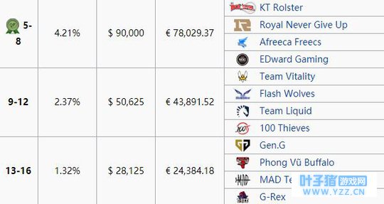RNG和EDG由于仅仅是止步了八强,所以他们的奖金相对而言少了很多,只有9W美金,其他的像闪电狼、TL以及GEN这些队伍就更少了! [编辑:叶子猪小秘书]