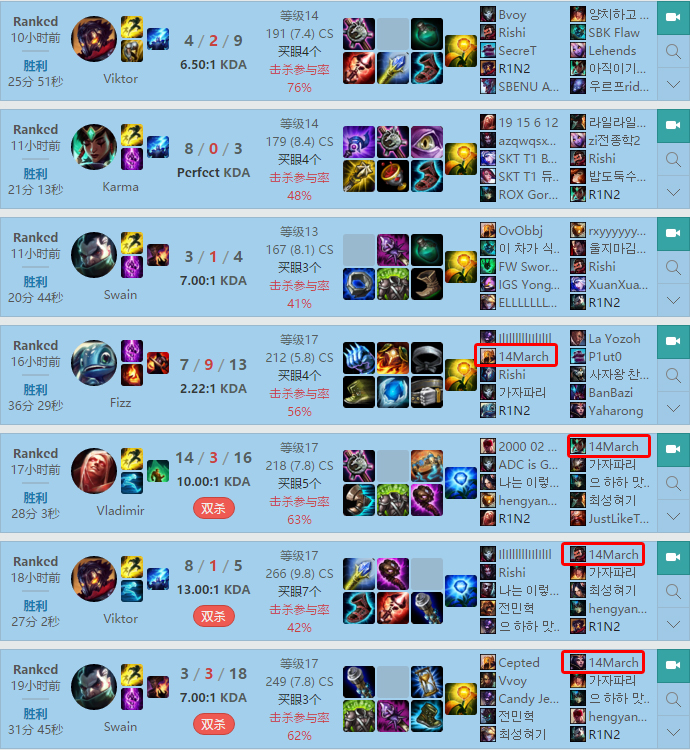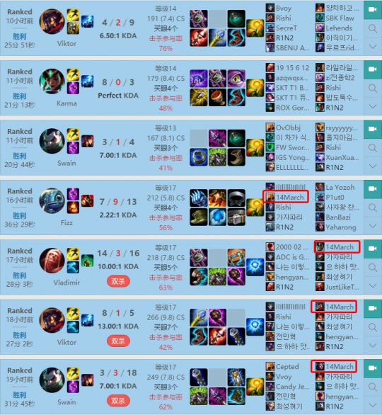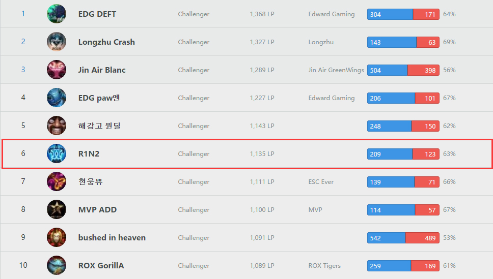 6月15日晚上,RNG的中单小虎大发神威,突然手感火热连取数场胜利。现已经打到韩服第六的位置,虽然与目前排名第一的Deft而言还有较大差距,但是按照他目前如此火热的状态,很有可能将登顶韩服第一。 小虎最喜欢使用的是在MSI大亮的妖姬,看来正是应了那句话,熟能生巧啊,不过以胜率来看,Xiaohu手里目前最强大的中单则是吸血鬼无疑,当他使用了吸血鬼时,竟然有着87%的恐怖胜率! 值得一提的是,由于分数较高,小虎也常常遇到EDG的现任中单小学弟,连续遇到的四把中虽然只有一把在对立面,但这把还是小虎取胜了,不过不知道Xiaohu在团队对决中依然能保持如此高的竞技水准呢? 小编点评: 虽然RANK分并不能代表一切,团队配合和战术才是英雄联盟比赛的看点,但假设Xiaohu能够登顶韩服第一,那么对于选手自己的自信也将会是一个非常好的提升,相信他会在接下来的比赛带给我们更加精彩的表现。 [编辑:歌神]