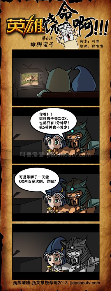 叫兽在LOL包括坑、被坑中的成长经历中创作出了英雄联盟主题系列漫画《英雄饶命啊!》,献给全天下的lol玩家。本漫画是叫兽在游戏中常用来恐吓对手的口头禅为例,当然绝对没有什么不要脸和羞羞的画面出现的,呵呵~