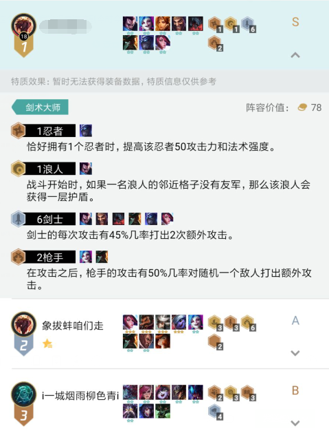 金克斯毋庸置疑是云顶之弈9.16版本中最强的一颗棋子,只需击杀掉两个目标就能切换成炮形态造成大量的AOE伤害,在枪手的羁绊加持下可以瞬间融化掉对面的阵容,目前除了反甲布隆可以略微阻挡下她的步伐外,其他阵容几乎没有一战之力!因此小编也趁着金克斯这个东风,为大家带来一个非常规的枪剑玩法! 阵容主体 完美阵容:慎、剑姬、金克斯、剑魔、船长、德莱文、卡蜜尔(7人口即可成型) 羁绊:6剑士(慎、剑姬、剑魔、船长、德莱文、卡蜜尔)2枪手贵族(金克斯、船长)2海克斯科技(金克斯、卡蜜尔)1忍者(慎) 阵容思路 枪剑阵容自9.15版本对于剑士羁绊改动后,就开始流行了。大致有两种玩法,一是走4枪手特效流,对于降星刀、肃静、电刀等装备要求较高,一旦完成全屏闪电飞舞,加上降星与沉默特效,瞬间就能让对面的战斗力降低两个台阶。第二种玩法就依靠金铲子将几个射手转化为剑士,打出鬼畜般的平A频率,达到让对面前排迅速减员的目的。 而我们今天要说的是,就是第二种枪剑的玩法,以剑士为主体进行高额输出,但是与众不同的一点是,除了金克斯与德莱文是C位外,船长在该阵容中也占据了十分重要的地位。主要是依靠一手火炮,将船长的AOE伤害能力发挥到极致! 阵容分析 优点: 成型快速,7人口即可达到吃鸡的要求,AOE伤害十分充足! 金币积攒速度超快,前期在男枪、船长、卡牌的加持下,三海盗羁绊能提供十分充足的金币。 后期多核发力,不易被针对。在现有套路下,金克斯、德莱文与船长都是可以成为主C的关键点。装备实在点背的话,剑魔出肉照样也可以翻盘! 缺点: 金克斯现在被玩家争抢,很难二星。 至少需要一把金铲子与三把反曲弓,非酋玩家不易达成。 中期容易崩盘,六剑士阵容坦度不高。 具体打法 该阵容的主C是金克斯(红buff、饮血刀、破败),装备方面要优先抢夺金铲子与反曲弓,副C是德拉文(饮血刀)或是船长(疾驰火炮、幻影之舞)。 开局:金铲子>反曲弓 开局如果能抢下金铲子的话,可以果断选择这个套路了,中后期只要脸不是很黑,火炮船长还是可以做出来的。该阵容并不需要过分卖血,由于前期走海盗流,因此人口升级与英雄刷新方面的余地极大。 前期:男枪、卡牌、派克、船长都是十分不错的选择。特别是男枪可以留一手,如果有多余的金铲子以及反曲弓的话,可以玩出加特林式打法。适当补充圣枪游侠、小炮、剑姬、卡蜜尔进行过度即可。 中期:利用海盗流攒金币快的优势,快速吃50金币利息,并且升级人口,尽量将金克斯与德莱文找到,完成基本的阵容。装备方面,尽量先做船长的火炮,但需要留一把反曲弓跟金铲子备用,等到金克斯出现时直接做出破败,派她上场即可。 后期:由于将三个C位成三角放置,因此就算被海克斯科技给禁了,问题也不是很大。影响其后期吃鸡的主要问题还在于坦度方面。因此可以在7人口的基础补上一手双护卫,或是亚索、天使等高星卡牌来吸收伤害。 总结与进阶 船长在做出火炮之后,生存与输出能力都会得到大幅度的提升,本身还兼顾枪手与剑士羁绊,十分适合当作主力来培育。如果没有幻影之舞的话,也可以用科技枪来代替,爆炸的火药桶能够给你意想不到的惊喜。 而这种三角形摆位,也是应对海克斯科技最佳的方法,仅会对于一位主C产生影响,并且站位相对集中,能够让前排吸收到足够的伤害。也可以让金克斯顺利击杀掉两个目标,在残局中直接收割! |