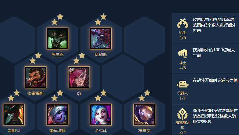 不得不说,金克斯真的是目前9.16版本中最强的一枚棋子了,一旦在击杀2位敌人之后,瞬间切换成炮形态,输出大量AOE伤害。她对于敌方阵营撕裂程度,比德莱文都要给力。而且还属于枪手羁绊,可以对于范围内其他敌人造成打击。今天小编就为大家带来一篇最大程度利用金克斯的枪斗术攻略! 完美阵容:狼人、大虫子、男枪、蔚、船长、小炮、金克斯、机器人(8人口完美阵容) 羁绊:4枪手(金克斯、、纳尔、小炮、船长)4斗士(狼人、蔚、机器人、大虫子)2海克斯科技(金克斯、蔚)1机器人(机器人) 阵容思路 金克斯是当前版本当之无愧的输出一姐!如果要利用好他的话,必须要为其安排上机器人这个最佳辅助角色。早在9.15版本中,设计师就对于机器人进行过一次优化更新,他勾取的敌人将会引起友方英雄的注意,大家会激火掉被勾来的倒霉蛋。这对于金克斯来说,可以快速锁定目标,并且在队友的帮助获得第一次助攻的攻速奖励。 而四枪手的羁绊不仅对于可以提高金克斯的输出能力,还可以使得小炮输出更高的伤害。船长与男枪看似是一个挂件,但是在火炮这件装备的支持下,同样能够发挥主C的作用。特别是男枪,目前他的平A范围会随着攻击距离的增加而增加,也是一位极其Carry的输出手。 阵容分析 优点: 兼顾坦度与输出能力,在机器人的参与下,该阵容可以快速令对面直接减员。 成型率极高,相对而言就金克斯与大虫子比较难抓取,其他棋子在打工的时候可以平滑过渡。 对于装备的适应性强,四位枪手人人都可以成为主C,而蔚与大虫子也能完美地适应防装,不论野怪爆出怎样的装备,都能良好地转化为战斗力。 缺点: 前期过于笨重,毕竟斗士们的攻击都是近战。 前排坦度不是很够,由于狼人与蔚的大招都是突进,如果金克斯不能快速秒掉勾来敌人的话,很有可能会因为狼人与蔚的打假赛被一波带走。 爆发不足且阵容过于集中,易被狂野龙法克制。 具体打法 一般而言,该阵容的主C是金克斯(饮血剑、红BUFF、电刀),副C是小炮(降星刀)或是男枪(疾驰火炮、巨型九头蛇),装备方面其实可以有效合成自然之力,主要依靠人口羁绊形成强大战斗力。 开局:金铲子>反曲弓 反曲弓可以合成电刀、降星刀等特效装备对于枪手而言是核心道具,当然如果攻击装备爆的不多的话,也可以给斗士们制作反甲、狂徒来对抗对面的枪手阵容。 前期:狼人、小炮、机器人、男枪都是前期较好过度的打工仔,由于对于装备的需求不高,因此切记前期少卖血,尽量打出高胜较早升级人口。 中期:在找到船长后,直接混搭派克或者卡牌,形成三海盗阵容,这时候可能会迎来连败不用过于担心,可以在40金币(5-6人口阶段)时候尝试D出一波三星男枪,并且寻找出一把火炮,增强阵容的AOE伤害能力。如果D不出3星男枪的话,也能混搭一些剑士,避免找不到金克斯的尴尬。 后期:如果能够找到金克斯的话,直接照搬前文阵容即可,利用机器人自带的“集火”功能,快速刷新出金克斯的被动。如果没能一时间找到金克斯的话,也可以果断改成枪剑阵容,混搭一些剑士,尽量给男枪做出一把破败,利用三剑士两枪手羁绊进行输出同样给力。 总结与进阶 这套阵容的核心点一是斗士们自带的高额血量能够在前中期维持良好的血量,而到了后期金克斯与机器人配合能产出质变,很推荐各位小伙伴尝试一波枪斗术的玩法。当然如果不能抓到金克斯的话,也可以在中期直接转阵容成为枪剑,采用传统的德莱文主C的玩法。 后期补上亚索或乌鸦,同样还是一套可以吃鸡的阵容,只不过对比起枪斗的坦度要低上不少,相反的是输出能力能得到大幅度的提升。至于如何转变形态,还是要看上一手发牌员的。小伙伴平时打金克斯的时候,不妨试试配上这几个,说不定吃鸡胜率会更高呢,欢迎小伙伴们在下方留言交流。 |