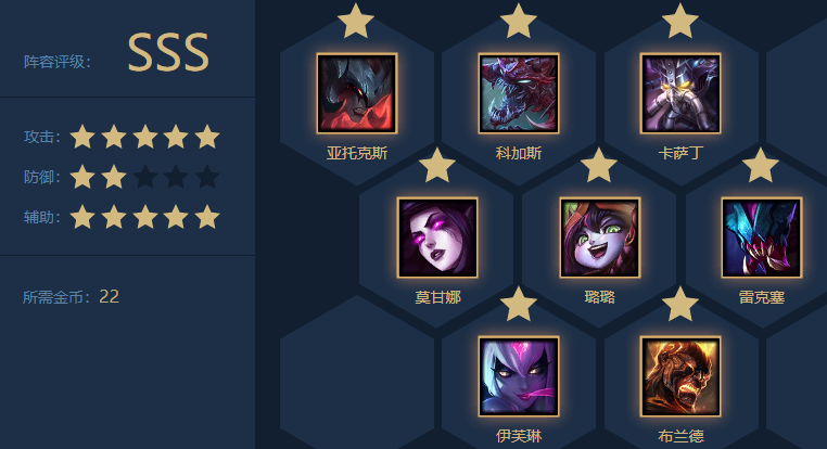 就在8月27日,云顶之弈国服正式实装了9.16b新版本,金克斯、德莱文、凯尔、圣枪游侠等众多英雄技能与基础属性被设计师一刀大砍,强势的枪剑流与贵族流也就此跌落了神坛。虚空刺阵容再次抬头,成为了目前版本最热门的阵容。今天小编就要为大家介绍一套较为冷门的上分套路,踩着版本大热门虚空刺上分! 完美阵容:蜘蛛、冰女、凯南、璐璐、斯维因、火男、莫甘娜、纳尔(8人口完美阵容) 羁绊:三元素(凯南、冰女、火男)4恶魔(斯维因、火男、蜘蛛、莫甘娜)3约德尔人(纳尔、凯南、璐璐)1忍者(凯南)3换形师(蜘蛛、斯维因、纳尔) 阵容思路 自从恶魔羁绊改动之后,小编就密切地研究了其强度,可谓是一位忠诚的恶魔流玩家。现版本恶魔流的强势之处在于40%烧蓝效果能够很好地延缓对面释放技能的脚步,加上改版后的加蓝效果,更是使得恶魔棋子可以极快地释放技能,因此莫甘娜是恶魔流核心中的核心,一旦她在对局中抢先开启大招,就能很好地限制刺客们的输出。 在凯南大招伤害得到削弱后,已经渐渐转变为一位控场型棋子了。虽然输出没有之前那般给力,但是如果能够通过铲子转职为恶魔的话,他便能成为另一种形式的莫甘娜,伤害更高保命能力也更强!纳尔则在新版本中得到了buff,变身后的攻击力加成大幅提高,能跟刺客们硬碰硬进行换血! 阵容分析 优点: 该阵容极度耐揍,在恶魔耗蓝,约德尔人闪避的羁绊加持下,刺客们开启技能的时机将会被延缓。 控制能力极强!璐璐、纳尔、莫甘娜、凯南、冰女均有着出色的控制能力。 续航能力出色,璐璐的大招、斯坦因与纳尔的变身加上冰女的冰雕,该阵容的续航能力出色,并不容易出现瞬间减员的情况。 缺点: 虽然只需8人口就能成型,但是该阵容的二星纳尔、火男,以及一星乌鸦的进场,都需要一定的运气加成。 前期伤害能力不足,前期璐璐、冰女、莫甘娜、凯南、蜘蛛都不以伤害见长,容易连跪掉血。 由于小菊的存在,因此该阵容的站位很难分散,会被海克斯科技轻松压制装备属性。 具体打法 正如前文所言,该阵容的主C是莫甘娜(卢登、鬼书)可以赌一把三星的机会,副C是凯南(鬼书、科技枪)或是纳尔(巨型九头蛇,狂徒、反甲),装备方面如果能将凯南转职为恶魔的话,直接成为主C同样能毁天灭地。 开局:金铲子>大棒 这套阵容偏于技能伤害,因此对于反曲弓的需求不高,可以尝试争夺金铲子,将凯南尽快转职为恶魔,当然在刺客阵容横行的时候,一只带着狂徒,反甲的纳尔同样给力! 前期:正常的蜘蛛、韦鲁斯开局,可以混搭狼人与豹女,增强前排能力以及凑换形师羁绊。在三元素没有集齐之前,蜘蛛并不是一个良好的前排。并且考虑到斯维因会拿不到的情况,杰斯与豹女用来打工与凑羁绊都是不错的选择。 中期:在找到莫甘娜与凯南后,尽快通过商店刷新的资源作出四恶魔与三约德尔人的羁绊,璐璐在运气好的情况下也可以考虑升三,对于刺客阵容的克制同样给力。中期的剑魔、小炮、小法也都是不错的棋子,甚至在纳尔迟迟不来的情况下,可以考虑走三元素四恶魔三法三约德尔的阵容。 后期:客观来说,斯维因与纳尔的获取难度在目前版本并不高,因此后期达成八人口完美阵容的概率并不低。纳尔如果准时到场的话,后期在选秀时不要犹豫直接拿大腰带或是锁子甲制作狂徒反甲即可。乌鸦一旦升到二星后,可以从后期拖到第二排,与凯南、莫甘娜起到同样的作用! 总结与进阶 这套阵容的核心在于各方面的均衡性,因此也缺乏爆发手段与瞬间能改变战局的英雄(金克斯、大虫子、德莱文)。所以需要大家在运营时多思考,在未能达到完美阵容之前,多去构思更平滑的转型思路。 在最后也为大家带来一手虚空恶魔的转型思路,主要通过卡萨丁、大虫子以及挖掘机优秀的前排能力为恶魔补弱。而三法师与璐璐的续航能力,来为恶魔流增加爆发手段!小伙伴们在9.16b版本有发现其它骚套路吗?欢迎在下方留言交流。 |