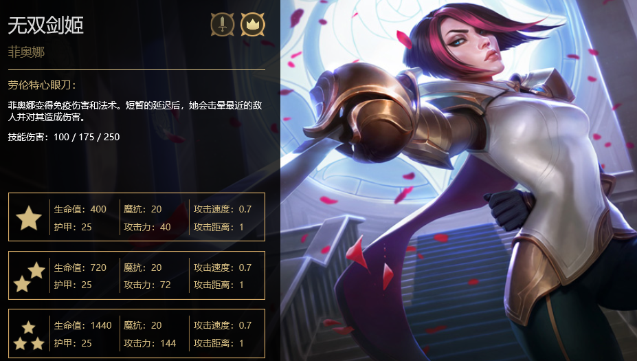导语: 随着云顶之弈新版本的更新,连指手套这件装备也给予了其他棋子化身约德尔人的可能性。就当大部分玩家将其作为龙女的新版本装备之际,剑姬的横空出世让人看见了新的曙光,在技能自带格挡的加持下,一旦给予了剑姬强大的闪避率,团战简直横着走! 首先我们来观察下连指手套的基本属性,20%暴击率与20%的闪避率,使得它十分契合那些攻速较快的棋子作为半生存半输出装来使用。使得棋子成为约德尔人的可能性,更让装备它的棋子起码能够享受到三约德尔人的25%闪避率加成。在共计45%的闪避加成下,即使不出防装,都能在4狂野外的阵容团战中规避掉近1/3的伤害。 而我们再来观察下剑姬的基本属性,作为全云顶之弈第三攻速(1.0)的棋子,她的血量、护甲、魔抗以及攻击力都不出众。这也使得除了六贵族的阵容外,没人会跟你去争抢她在前中期阶段就能十分容易地合成出三星。而剑姬最为强大的能力,则是她的大招劳伦特心眼刀了,能够在1.5S内免疫掉一切技能,并对至多两位目标施加1.5S的眩晕。最为关键的是,这个能够提供金身效果的大招,仅需要75点蓝量就能释放! 这就使得剑姬在连指手套提供的高闪避率下,配合其大招能够在团战中坚挺十分长久,是一位十分合格的前排战士。如果能配上青龙刀蓝量回复以及饮血剑血量回复的话,剑姬在团战更能从前排打到后排,一路砍到底压根不带喘气的! 不过剑姬在释放第一个大招之前还算是十分脆弱的,因此可以与元素使所召唤的小菊配合,在他的庞大身躯下安心进行输出。加上三剑士羁绊所带来的额外攻击次数,剑姬在后期一场团战中最起码可以释放出5次大招,规避掉成吨的伤害。 完美阵容: 剑姬、亚索、德莱文、凯南、冰女、璐璐、火男、卡牌(8人口完美阵容) 羁绊:3剑士(剑姬、亚索、德莱文)1忍者(凯南)3元素使(凯南、冰女、火男)3约德尔人(剑姬、凯南、璐璐)1浪人(亚索) 具体打法 开局:金铲子>大剑 让剑姬前期抢到连指手套转职为约德尔人是该阵容的关键,因此前期在选秀时尽量抢夺金铲子来保证套路的顺利实现。此外该阵容也需要大剑来提升剑姬的平A能力,当然在条件允许的情况下,可给冰女备上一本鬼书来提高输出能力。在对面无反甲(刺客不强势)的情况下,德莱文并不是过多装备就能屠杀了,毕竟剑姬的前排站桩能力极强。 值得一提的是,假设是遇到中后期狂野羁绊进入吃鸡圈的情况,该阵容可以直接转换成元素双龙来对抗,此时千万不要固守剑姬无限金身的套路,可将饮血剑与连指手套给龙女,青龙刀给火男使用。 前期:三贵族正常打工即可,前期可用蜘蛛、男枪来卖血拿装备。随后补上慎与卡密尔组成三剑士。值得一提的是,慎可以一直用到凯南出现为止,强大的技能闪避恰好与剑姬的免疫相得益彰。 中期:三贵族转三约德尔人阵容,如果中期没拿到火男的话,凯南没必要上,可用波比替代,此时依靠卡牌的回蓝能力与剑姬、冰女的自保能力来构筑前排防线,后排可补一手韦鲁斯在德莱文未成形前,与火男组成双恶魔羁绊。 后期:在亚索没来前,卡牌用船长加金克丝来过度,德莱文与剑姬的装备优先供给。在亚索到来之后阵容直接成型,卡牌在该阵容中所起到作用主要是给队友们提供不稳定的回蓝效果,帮助剑姬早日发挥回蓝刀的效果。 当然在冰鸟先于亚索到来的情况下,也可以优先使用冰鸟来替换掉凯南,并将慎放于场上。在新版本更新后,冰鸟的范围伤害同样很高,并附带有强大的减攻速效果。小伙伴们对于剑姬主C这套阵容有什么看法呢?欢迎在下方留言。 |