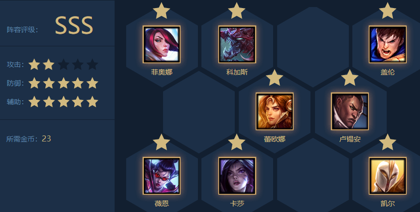 导语: 自从9.21版本以来,四虚空就成为了最佳的吃鸡组合,5费卡莎高灵活度与强势的伤害输出能力,成为了后期残局的收割机器。不过在真正的后期中,四虚空阵容也并不能稳定保证自己百分百成功吃鸡,毕竟由于羁绊与装备的限制,无法在阵容成型后增加十分实用的后期棋子与神装,而今天咱们要介绍则是真正的大后期无解阵容。 首先还是深度研究下卡萨这个棋子的技能属性吧,在由于本身刺客羁绊的存在,因此卡莎在开局就能够直接切入后排,并在攒蓝结束后突进至最远的目标处,保证自己一定的生存能力,加上本身技能附带的攻速加成,卡莎其实对于装备的依赖性不大,一般而言一把科技枪就能保证她的生存与输出能力。 其实限制卡萨或者说限制四虚空吃鸡能力的主要因素,还在于卡莎在被控制后脆弱的身板容易猝死。一旦对其装备投资过多,卡萨所带来的团战风险度也越高,并且海克斯与暗影的针对性,更是时时刻刻制约着卡莎的发挥。 因此为卡莎连锁上强大贵族与双护卫羁绊,正是保证它开局被针对也可以安心主C的关键所在。贵族强大的攻击回血机制与护甲魔抗加成,使得卡莎在即使被控制也有大概率存活,并开启大招逃跑。,虽然双虚空为卡莎带来了真实伤害的不确定性,但是天使的大招与薇恩的游侠羁绊奠定了卡莎又肉又能打的成神基础。 完美阵容: 剑姬、盖伦、奥巴马、日女、天使、潘森、大虫子、薇恩、卡莎(9人口完美阵容) 羁绊: 6贵族(剑姬、盖伦、奥巴马、日女、天使、薇恩) 2游侠(薇恩、卡莎) 2虚空(大虫子、卡莎) 2护卫(潘森、日女) 2骑士(盖伦、天使) 阵容思路 这应该迄今为止小编所推荐阵容中最后期的一套羁绊了,足足需要9个人口才能达到理想中完美。但是各位小伙伴们也不用太过于害怕。在六人口阶段可走骑枪特效流,7人口转贵族金克斯,8人口演变成六贵双虚空,最后加入潘森成型即可。其实不过是将之前我们所学会的卡组思路温习了一遍罢了,正好也与云顶之弈S1赛季末的时间点相契合。 具体打法 开局:大剑>反曲弓 卡莎的主力装备需要科技枪与缴械刀,后期视情况而定做出青龙刀或是龙牙,对于装备的需求并不是很高。当然在装备不顺的情况下,卡莎堆出一些以反曲弓为主的特效装备,然后博一手飓风也是可以的,而这些特效装备更是金克斯过渡时期的神装! 由于该阵容的难点主要集中于六人口阶段开始的过渡与转型,因此下面咱们直接从六人口阶段开始介绍达成后期吃鸡关键因素吧。 六人口阶段:双骑双暗影双枪手流强势吃鸡,其中千钰一星作为挂件即可。在双暗影点名下,可以快速激活金克斯的被动技能,而盖伦与奥巴马也是前中期相当强势的作战棋子,盖伦在情况合适的条件下可追三。 七人口阶段:如果天使可以快速加入阵容的话,直接六贵金克斯上手即可。虽然缺乏了双暗影开局强势的压制能力,但是贵族的续航与枪手的特效攻击搭配得相得益彰。此时金克斯可以直接掏出科技枪与缴械刀来过渡,剩下的装备可交给奥巴马或是天使(巨人杀手)。 八人口阶段:在卡莎到手后,就可以考虑双虚空阵容上场了。大虫子是最好的选择,螳螂、挖掘机作为挂件也勉强凑合。此时主要还是在于卡莎第三件装备的选择上,如果对面是护卫龙的话,青龙刀无限大可以躲过龙王与潘森的技能。如果是六法能依靠技能伤害吃饭的阵容,则能够用龙牙来抵消压力。 总结: 这套阵容的发力点集中于六七人口阶段,通过斗枪打工的强势期来淘汰其他人,以获得棋子的选择权。后期快速升级人口后,集齐完美阵容瞬间锁血吃鸡,也算是对于S1赛季各大强势的阵容回顾与温习了。小伙伴们对于这套体系有什么看法呢?欢迎在下方留言。 |