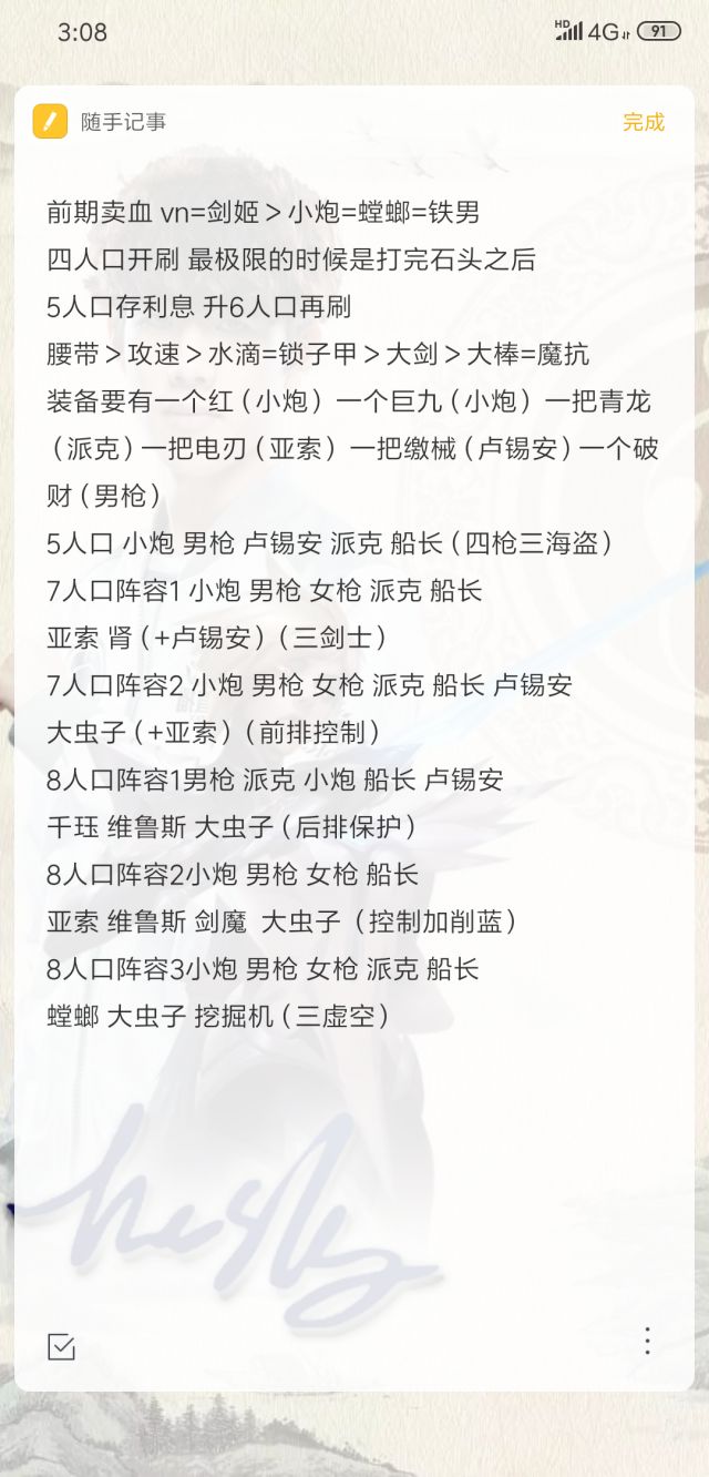 本攻略详细得讲解了三海盗四枪手阵容的适用心得,如果你打算适用这个阵容可以来看看。 具体细节有 1 卖血把vn小炮 放第一排 剑姬放后面 2 4人口8经验开刷 一般是打石头之前或者之后 具体看你打不打得过石头决定 实在打不过又想打完石头再刷可以合个诺手 肾 德玛来打 3 刷出四枪三海盗开始攒钱 50金币之前尽量不要用 除非实在难打 4 小炮的红buff和巨九最重要 其次是派克的青龙刀 卢锡安的缴械 压缩的电刃 有帽子可以给船长或者女枪 小炮还可以给个火炮 5 中期没火炮 尽量把小炮放最后一排的中间位置 第一排左右放男枪 船长 6 7人口根据自己有没有三星卢锡安抉择是走三剑士还是拿大虫子 猪女打控制 7 想不到了,之后再编辑