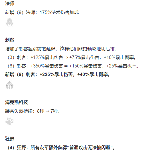 相信对于各位沉迷云顶之弈的小伙伴而言,对于国服久不更新的情况已经产生了厌烦,毕竟外服的潘森那是额外的诱人啊!而根据国服策划今日透露的消息来看,由于受到国服八周年的影响,因此国服将会直接跨版本进行9.18版本的更新,那么在新版本将会出现怎样的变化呢? 三星亚索人手一个?后期吃鸡淘汰率大增! 在9.18版本中,妮蔻将会作为装备加入到云顶之弈中,帮助小伙伴复制一位所装备她的英雄,并会在复制之后直接消失。妮蔻的出现将会彻底影响现有云顶之弈吃鸡的格局,特别是对于赌狗流进行了一波史诗级加强,小编已经可以预见到在6人口阶段大家5个三星英雄神仙打架的局面了。 毕竟对于赌狗流玩家而言,追三的可能性往往会因为人口的升级而变得尴尬,但是妮蔻的出现就意味着就算是后期阶段,赌狗流依然也有着轻松合成大量三星棋子的可能性!当然更加可怕则是在后期对战中,欧皇玩家极有可能会利用妮蔻合成出三星亚索、三星斯维因这样可以一打多的逆天棋子,直接无视装备、人口差距而成功吃鸡。像是恶魔、九剑、六枪手这样靠人数星级变强的羁绊,也会因为妮蔻的出现而变得极为强势! 掉落机制革新!非酋玩家呼吸权被剥夺 在9.18版本中,设计师为增加游戏内容的随机性,还在云顶之弈中对于掉落机制进行了改动。将野怪爆出的箱子划分为了普通、稀有以及非凡三个品质。在普通品质下将会掉落金币、英雄或装备小件。而对于非凡品质而言,则会直接掉落英雄、妮蔻或是成型的大件装备。稀有品质的掉落处于非凡与普通之间。 潘森进场!羁绊大改,游侠称王 在9.17版本中兴风作浪的潘森也在版本更新后加入到国服之中,本身龙加护卫的属性使得龙与护卫羁绊都更容易凑齐了。而他高额的80护甲加成以及大招自带的减治疗与燃烧20%生命值的效果,使得潘森成为了5金币英雄中的新欢。战略地位可与斯维因、大天使媲美,并且在抓取潘森之后,鬼书与红BUFF这两件装备也就不必强行合成了。 当然潘森的进场也使得大量羁绊进行改动,护卫首当其冲护甲加成缩减为35;而在当前国服呼风唤雨的刺客羁绊进行了重做,刺客所获得的暴击伤害大幅下降,并获得了少量暴击概率作为补偿,整体的爆发能力被砍;4狂野羁绊新增了“普通攻击无法被闪避”的特性,约德尔人羁绊不幸躺枪。 而游侠羁绊则获得了大幅度的增强,攻击速度翻倍概率不仅提升至30%/70%,而且在新版本的改动下,英雄们的攻速上限被提升到了5.0,在攻速装备的支持下,寒冰可以真能实现一秒五冻的壮举,抢先预定9.18版本之子的宝座! 总结来看,国服由于跨版本更新的缘故,一旦开启更新将会对于现有版本的强势阵容进行翻天覆地般的革新,运气成分将会扩大,游戏娱乐性提高,而游侠羁绊真正称王的时刻也将来临!小伙伴们对于9.18新版本有什么看法呢?欢迎在下方留言。 |